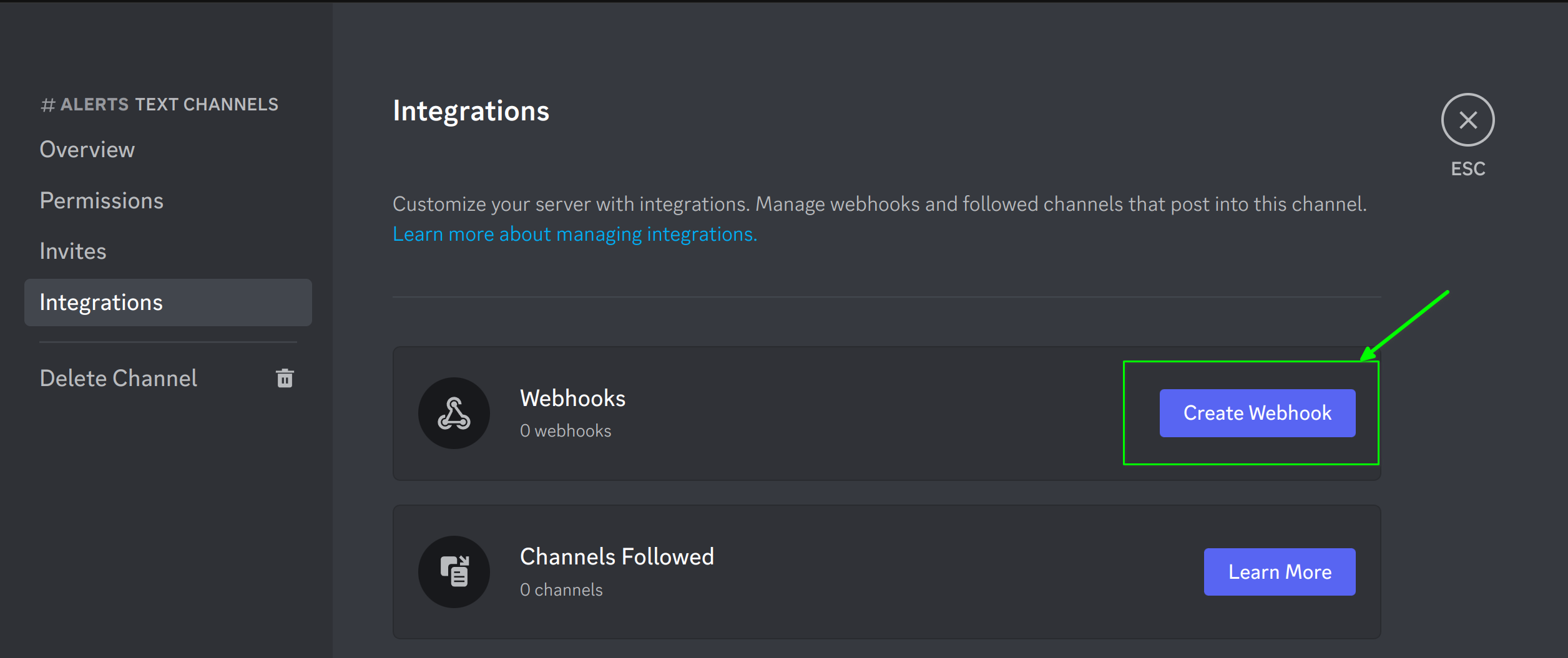 We assume you're already using Discord and have a channel that you want to send alerts to (in this example, we're using #alerts).